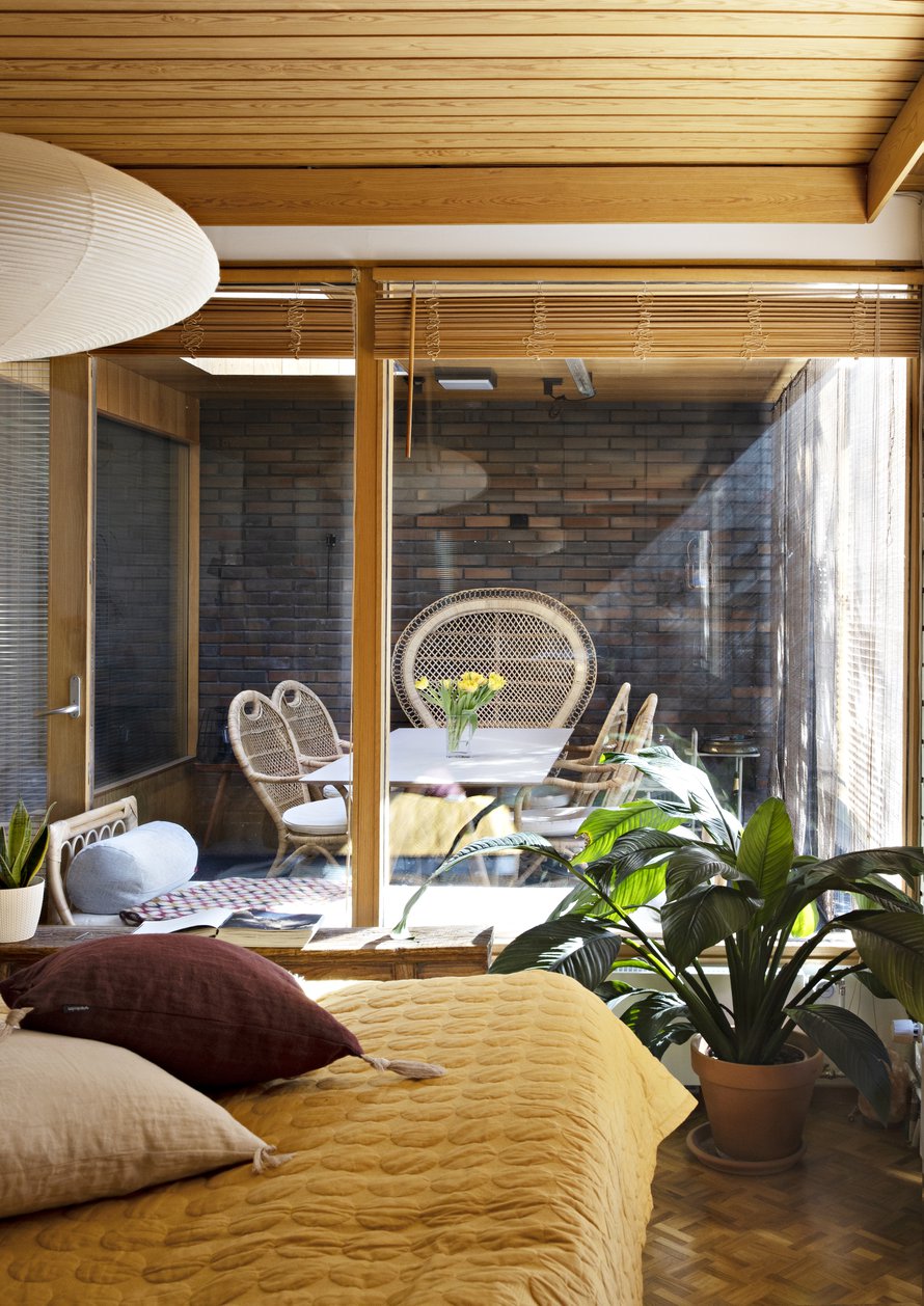 Se oli rakkautta ensisilmäyksellä, kun Tunna Milonoff perheineen vaihtoi koronan siivittämänä keskustan kerrostalosta väljempiin neliöihin. Rivitalokodissa 1970-luvun arkkitehtuuri kohtaa suomalaisen designin ja värikylläiset Kaakkois-Aasian matkamuistot.