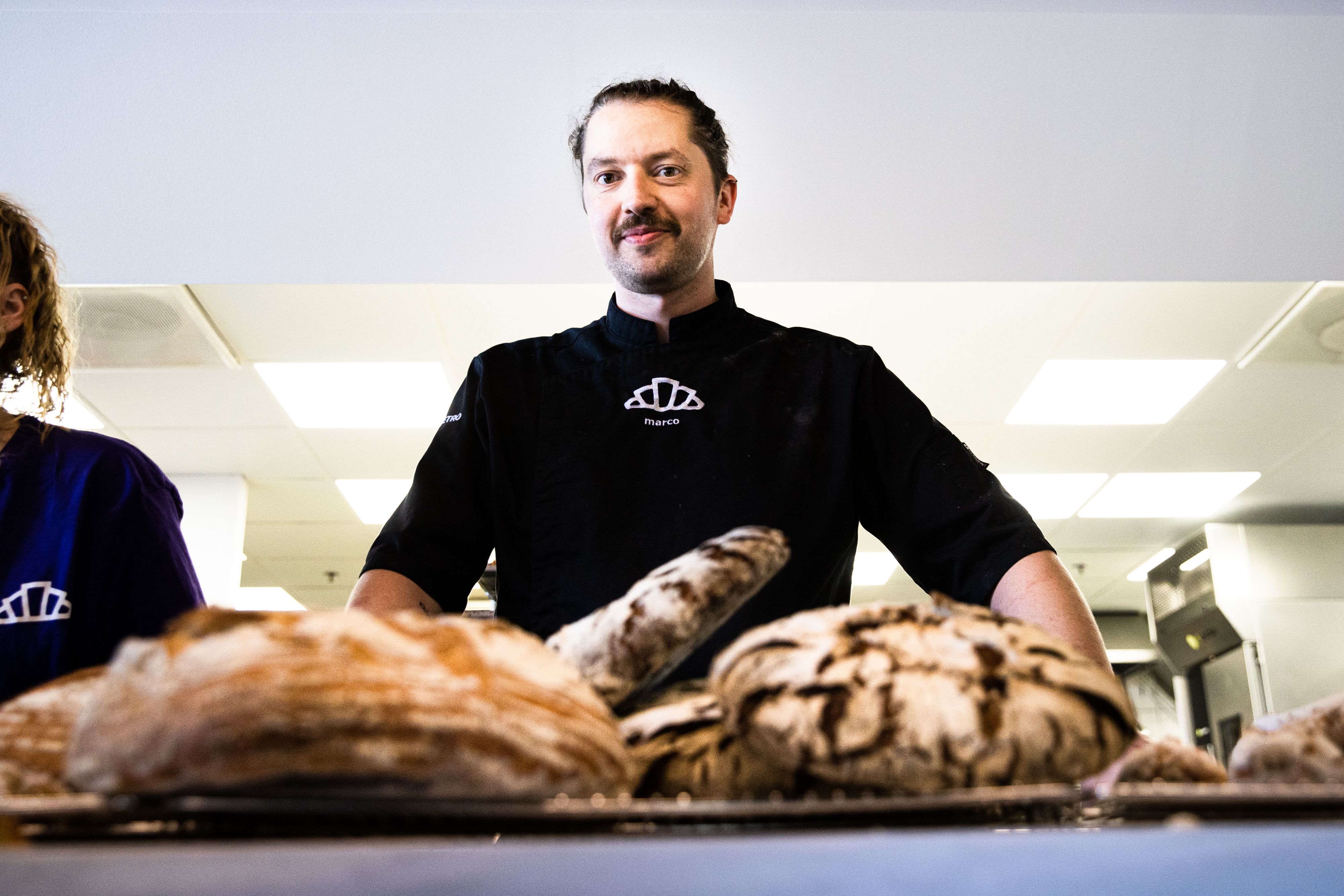 Pinta on tumman rapea, mutta sisus pumpulin pehmeä. Syön Marco Boulangerie Cuisinen hapanjuurileipää, jota tarjoillaan lounaan yhteydessä. Keväällä kauppakeskus Tullintorille avautunut konditoria ja lounaskahvila on saanut nimensä Pariisissa kasvaneelta kokki-kondiittoriltaan Marcolta. Käsintehdyn pastan jälkeen himoitsen tiskillä tervehtiviä ranskalaistyylisiä leipomuksia. Mantelicroissantit viedään kuulemma käsistä.