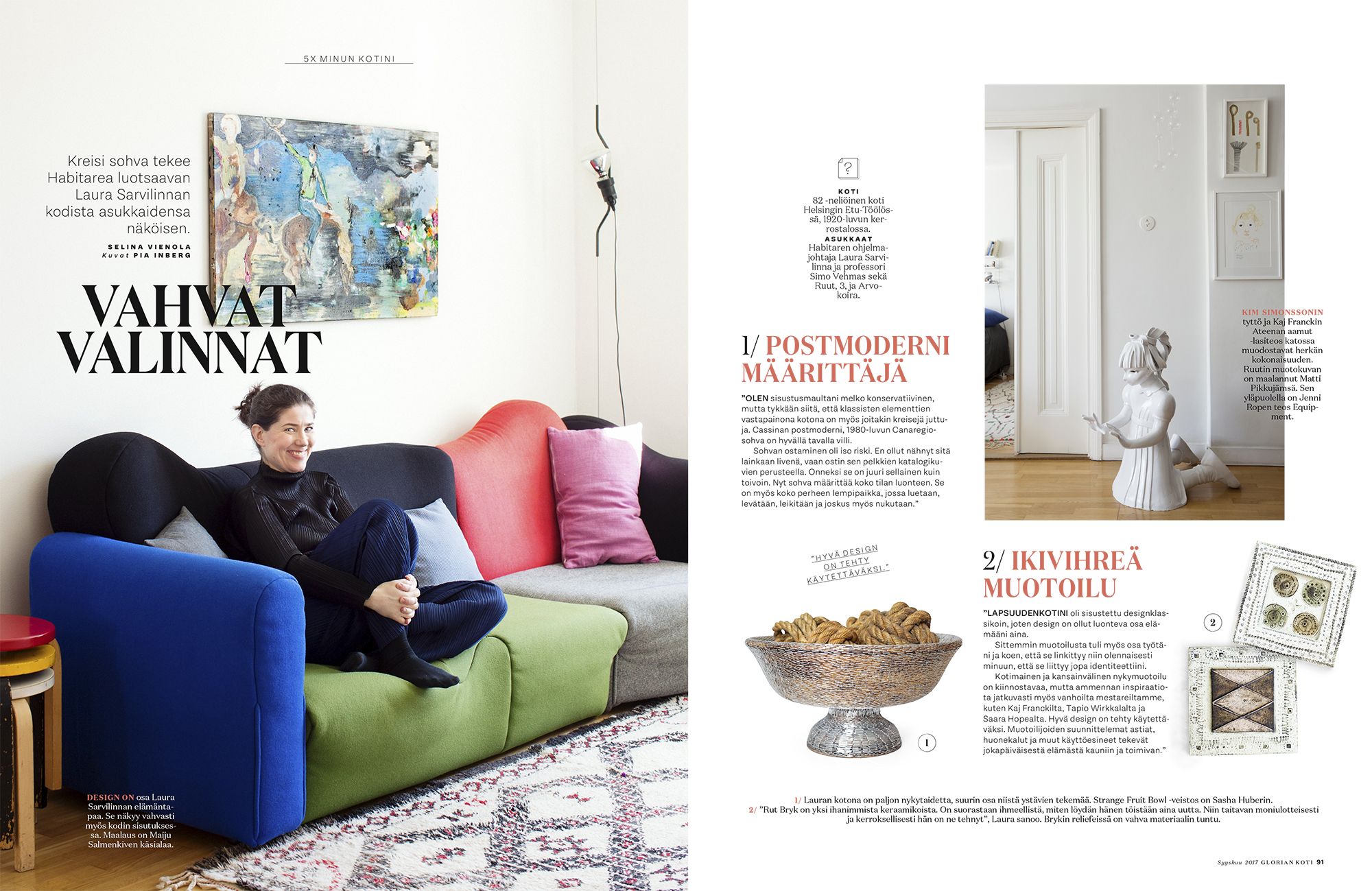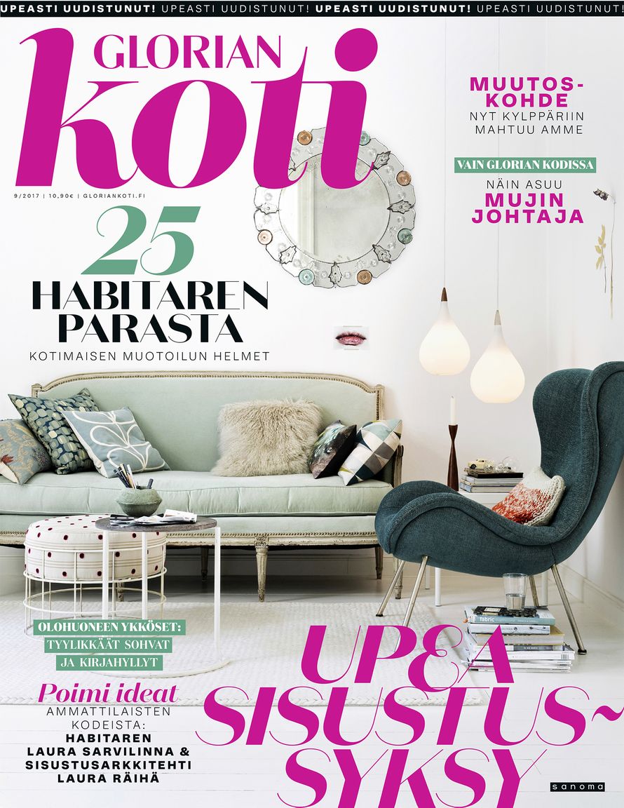 Syyskuun numerossa vierailemme muun muassa sisustusarkkitehti Laura Räihän taidokkaasti sisustetussa kodissa ja piipahdamme Habitarea luotsaavan Laura Sarvilinnan kotona. Vain Glorian Kodissa: kylässä Mujin johtajan Masaaki Kanain kotona Tokiossa. Lisäksi valitsimme 25 Habitaren parasta uutuutta. Kurkista uuteen lehteen: