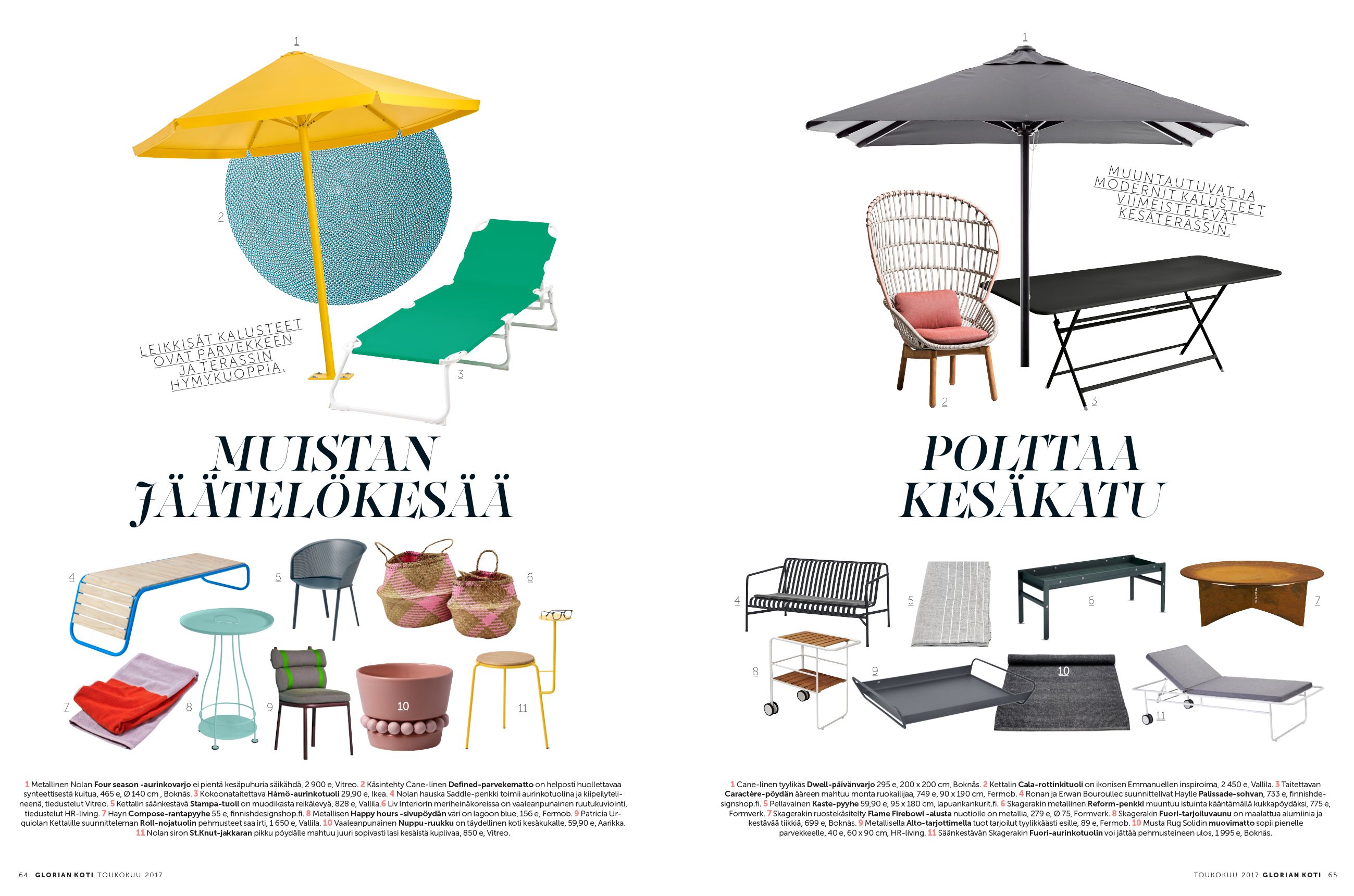 Toukokuun Glorian Koti on ilmestynyt. Mukana upeita ideoita ulkoelämään pihalle ja terassille sekä kauneimmat maalit ja tapetit.