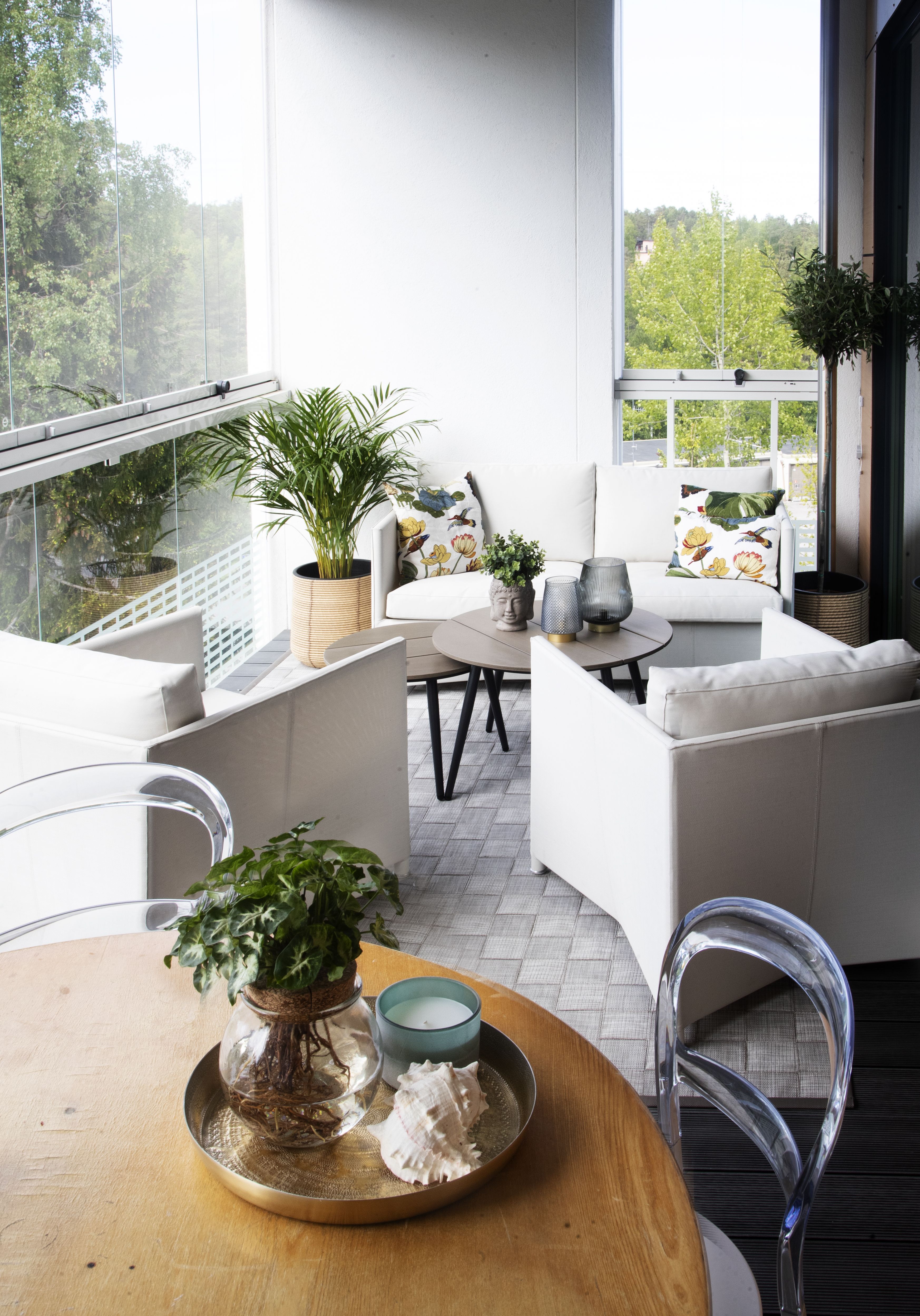 Asuntoa etsiessä pohdin, muuttaisinko mieluummin Helsingin keskustaan, mutta lopulta Kauniainen tuntui enemmän kodilta. Nautin siitä, että parvekkeella istuessa kuuluu pelkkää linnunlaulua. Toisaalta Helsinkiin pääsee nopeasti autolla. Kauniaisissa on kaikki mitä tarvitaan - lenkkipolut järven ympäri aukeavat melkein kotiovelta ja lähimetsiin pääsee vaeltamaan. Kuitenkin myös kaupat ja kaikki palvelut ovat ihan vieressä. Hetken mietin omakotitaloakin, mutta ei 20-vuotiaana jaksa vielä huolehtia mistään räystäiden puhdistamisesta tai pihatöistä. Uskon, että asun tässä kodissa ainakin niin kauan, kunnes minulla on omaa perhettä.