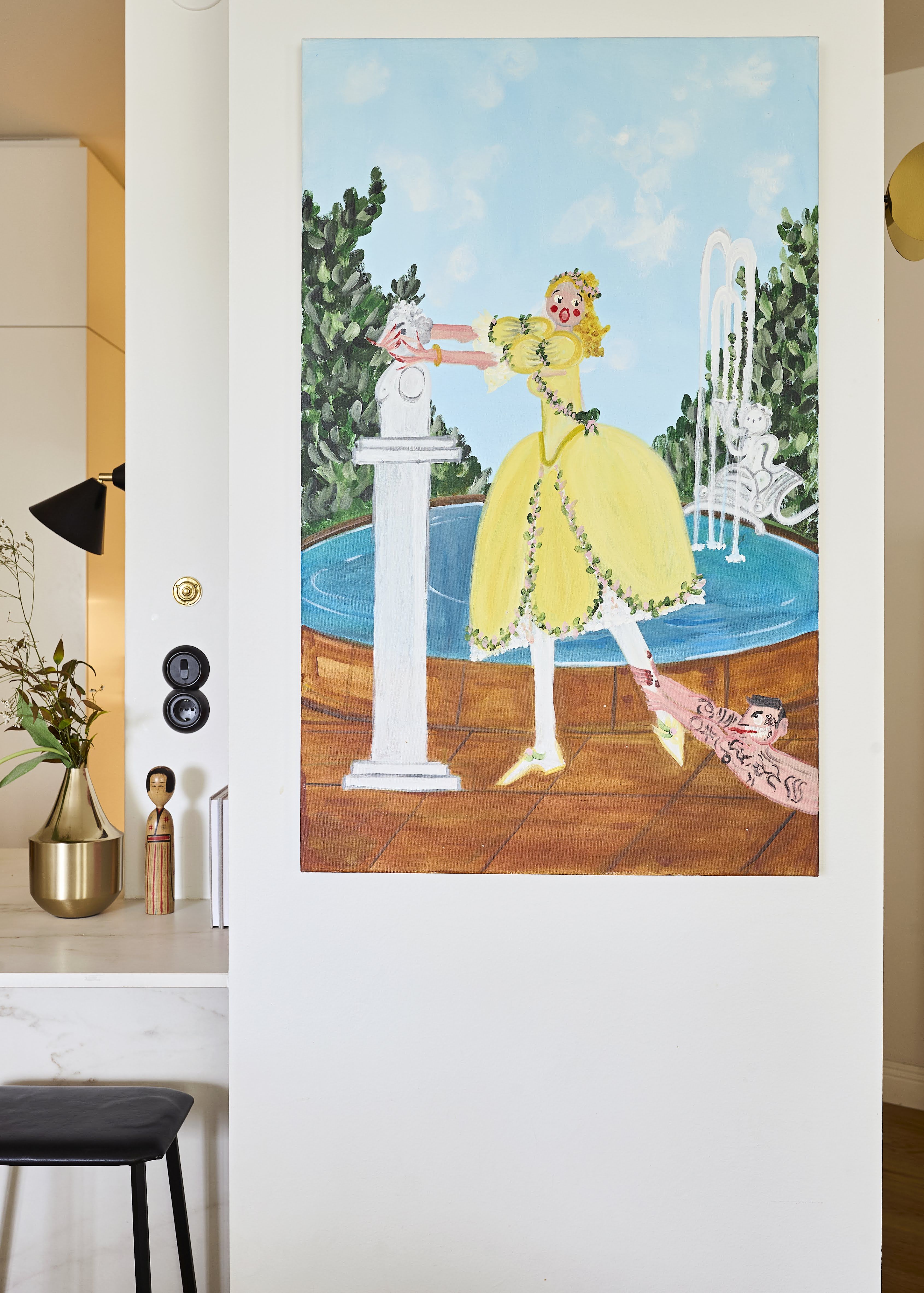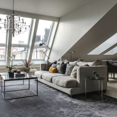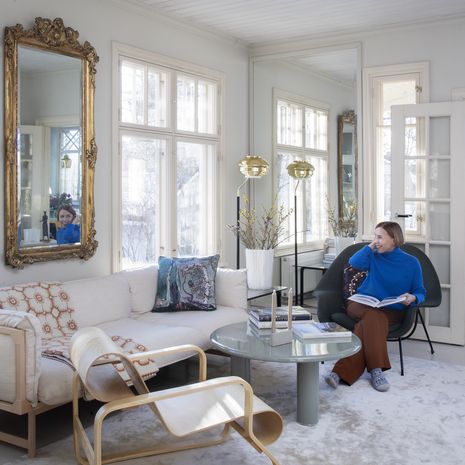 Kotimme on ensimmäinen yhteinen oma asuntomme. Asuimme aikoinaan vuoden verran New Yorkissa, ja kun muutimme takaisin Suomeen, Markulle oli syntyperäisenä töölöläisenä tärkeää etsiä kotia juuri Töölöstä.