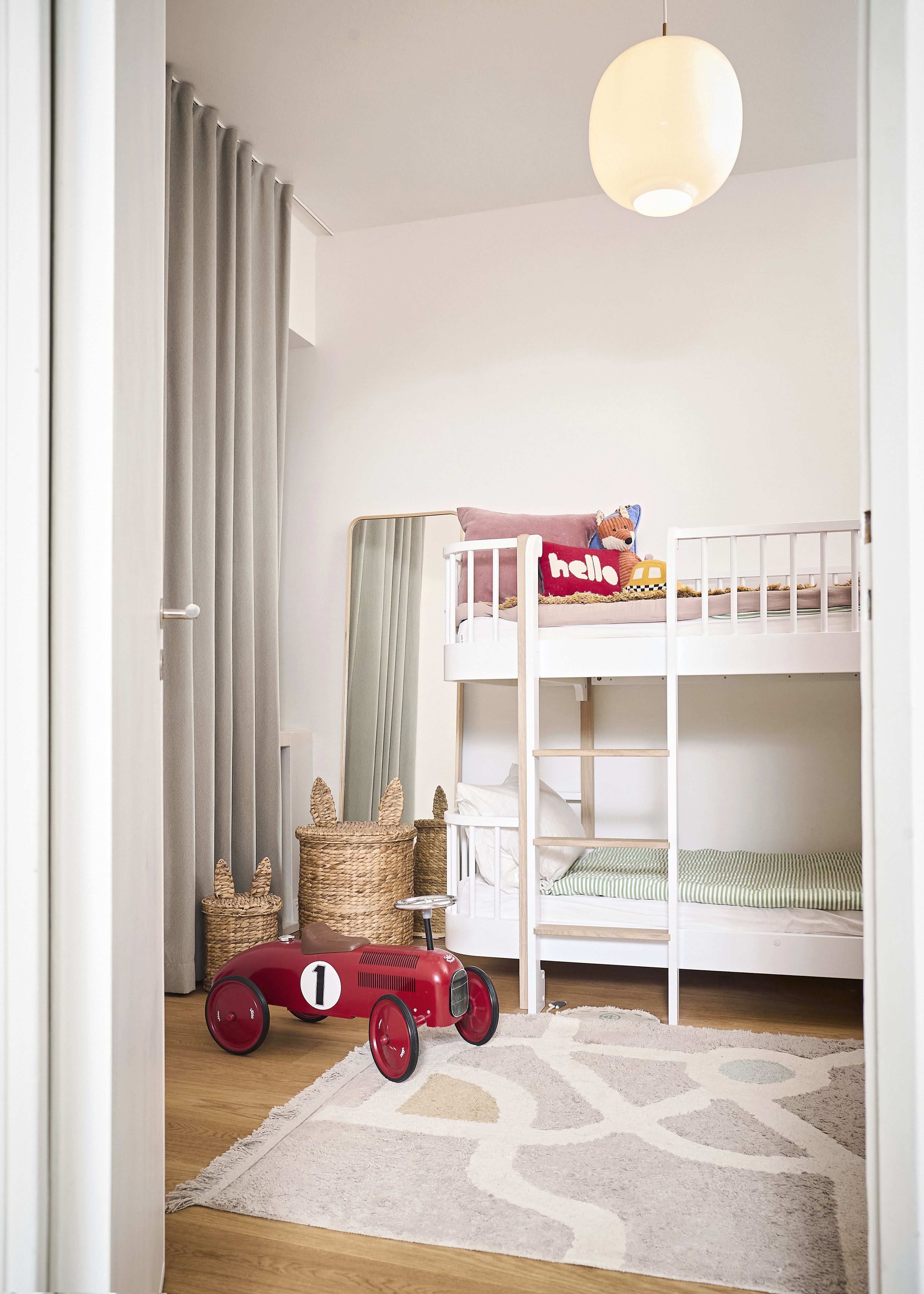 Parveke on kotimme lempijuttuja. Vaikka se on vilkkaan kadun suuntaan, käytämme sitä usein, lämpiminä vuodenaikoina etenkin. Pikkulapsiarjessa olemme paljon kotona, joten parvekkeesta on tullut meille ihana pieni pakopaikka. Lapset puhaltelevat saippuakuplia taivaan tuuliin, ja me istumme kesäiltoina ulkosalla lasten nukkumaanmenon jälkeen viettämässä iltaa, lukemassa tai lasillisella. Viherpeukaloita emme ole, mutta parvekkeelle laitamme kukkia ja kausivaloja. Remontissa parvekkeen toinen ovi vaihdettiin ikkunalliseksi, jotta valo pääsee läpi ja parveke näkyy myös sisälle.
