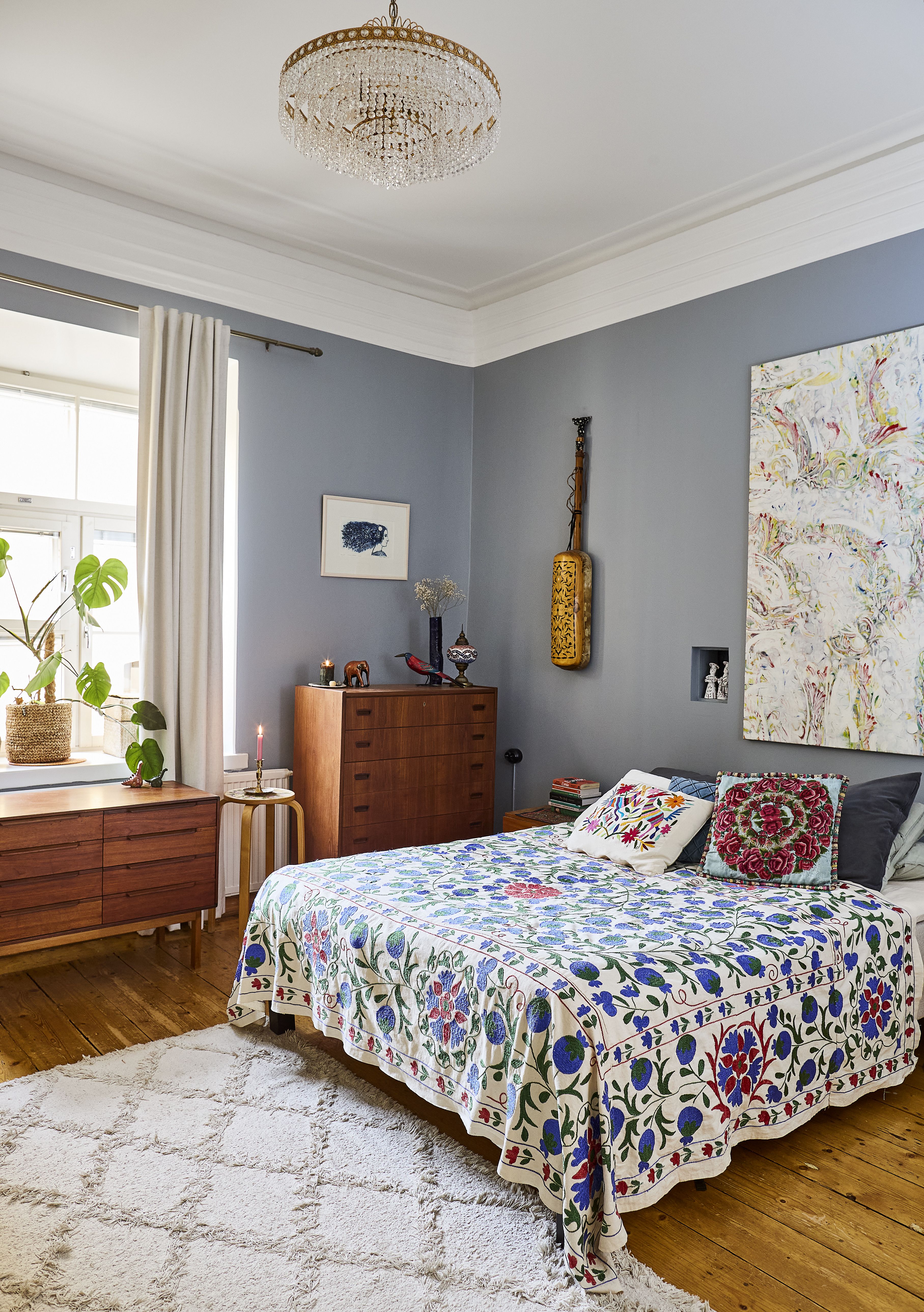 Olemme Samin kanssa kummatkin kiertäneet maailmaa, ja tämä asunto Suomessa on ollut tukikohtamme kolmen vuoden ajan. Toinen kotimme on Mallorcalla. Kotimme on täynnä muistoja maailmalta. Haluan aina matkalta muistoksi jonkin käsityön, koriste-esineen tai tekstiilin. Se jää symboloimaan matkaa tai kokemusta ja muistuttaa menneestä ja tehdystä. Se on tietynlaista matkantekoa myös kodin sisällä. Samalla kun ne ovat matkoja menneeseen, ne ovat asioita joita pidämme arvossa ja myös tulevaisuuden unelmia, koska ne liittyvät taiteeseen, vapauteen ja itsensä ilmaisemiseen.