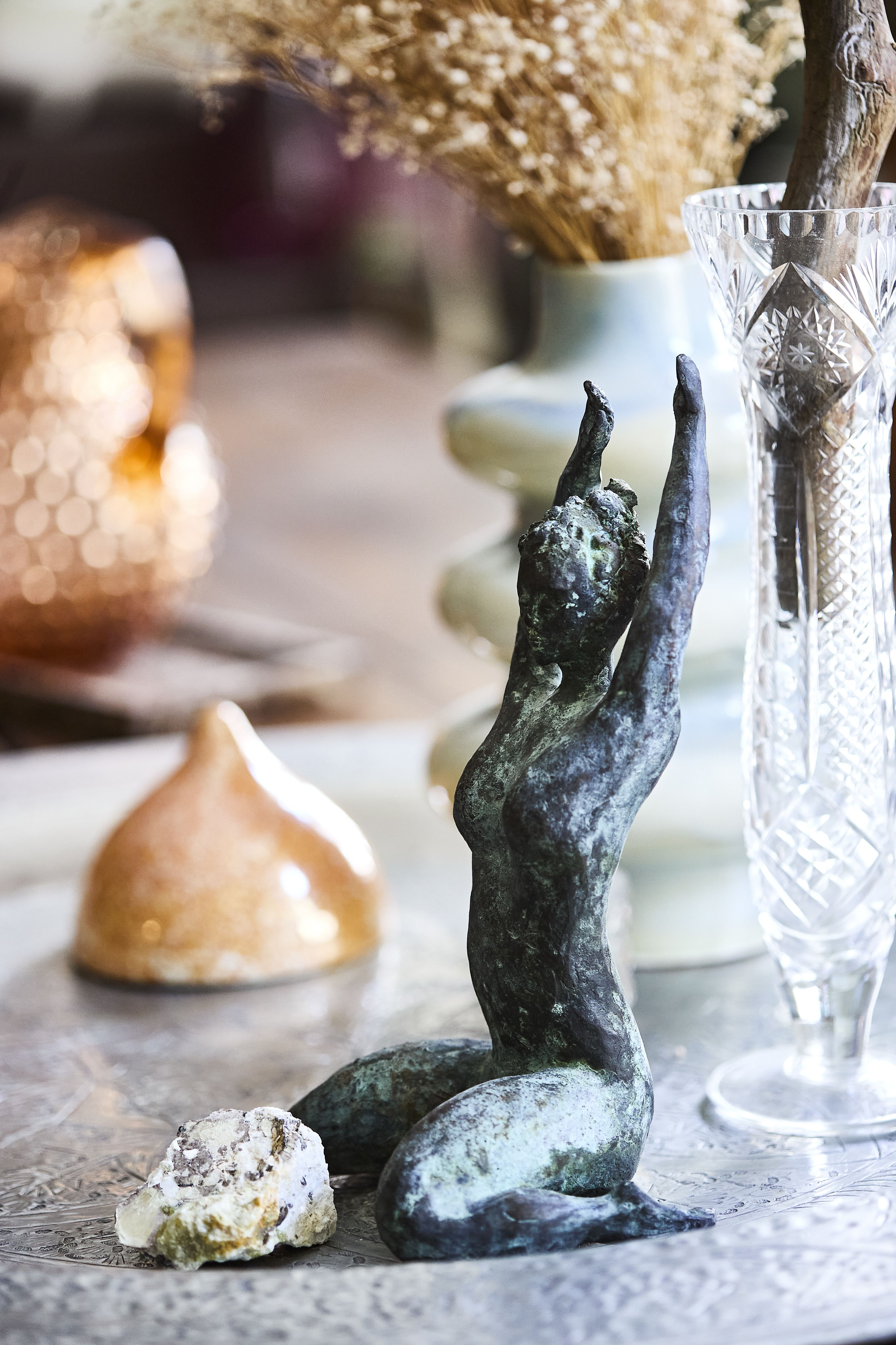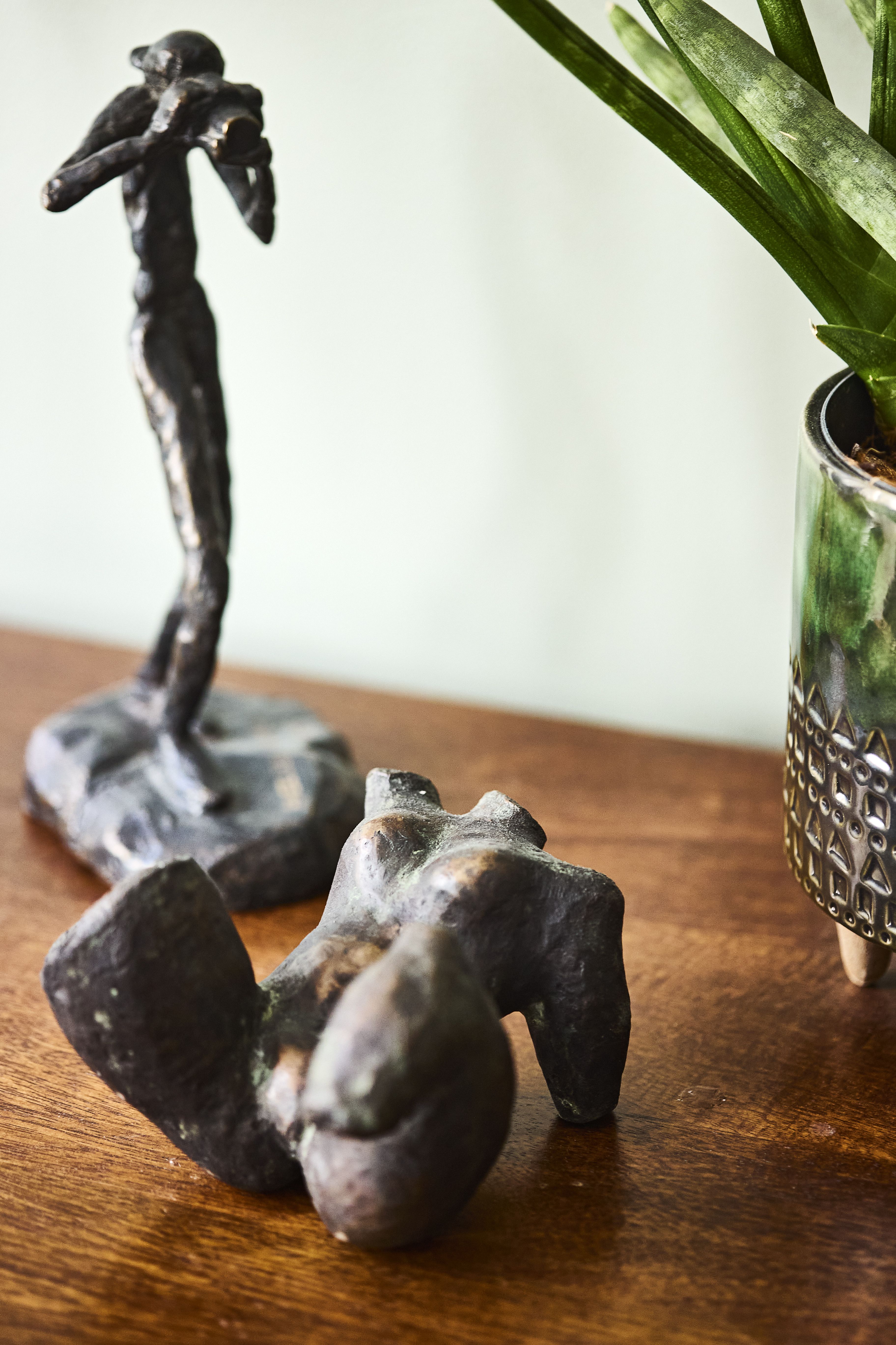Myös lähimmäiset ovat kotonamme läsnä käden tekemisen kautta. Seinillä on useita Samin edesmenneen isän maalauksia. Hän maalasi harrastuksena ja oli niin itsekriittinen, ettei koskaan esitellyt niitä. Minun isäni puolestaan teki pronssiveistoksia. Hänen kuoltuaan pari vuotta sitten hänen teoksensa ovat alkaneet merkitä isän läsnäoloa.
