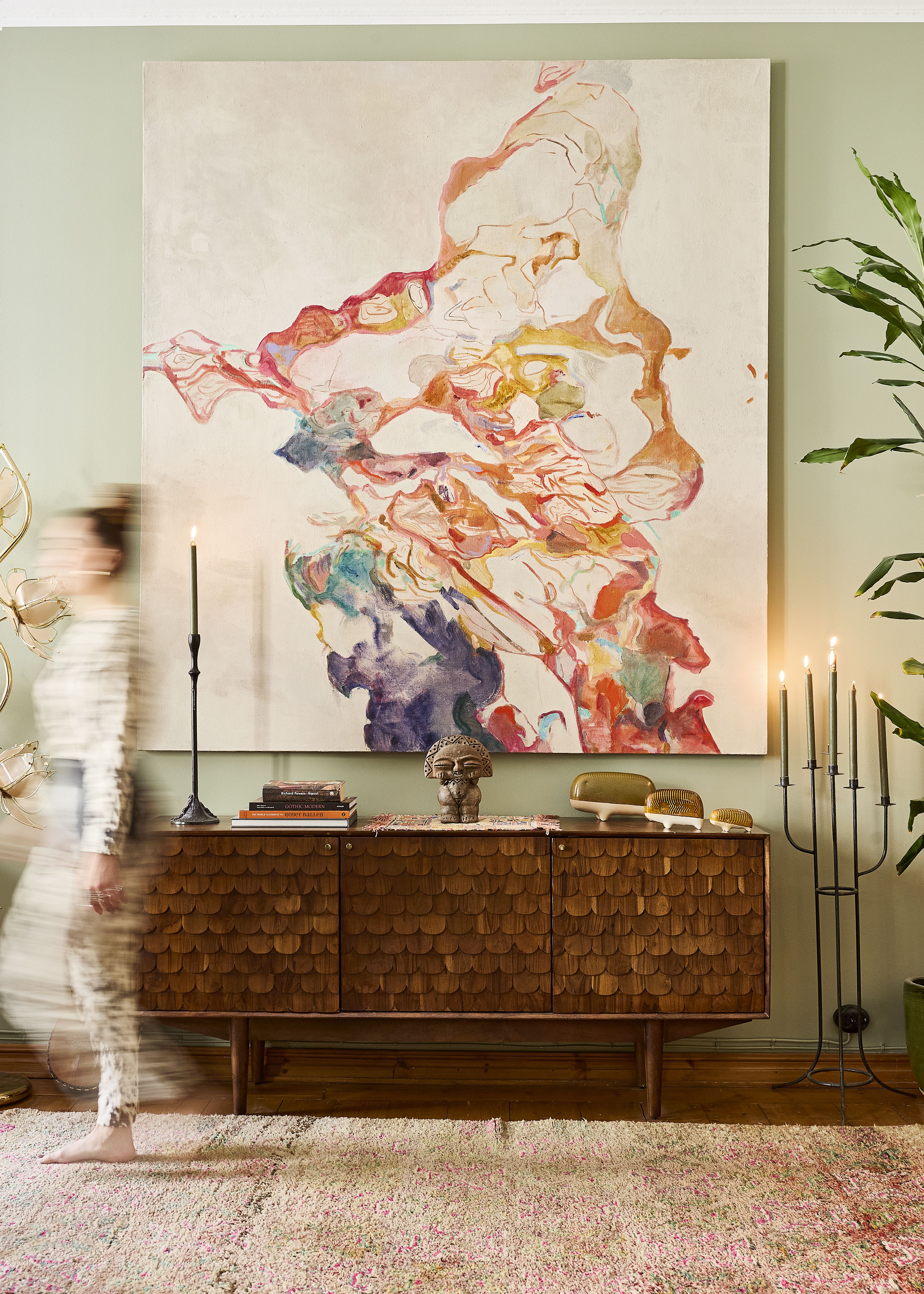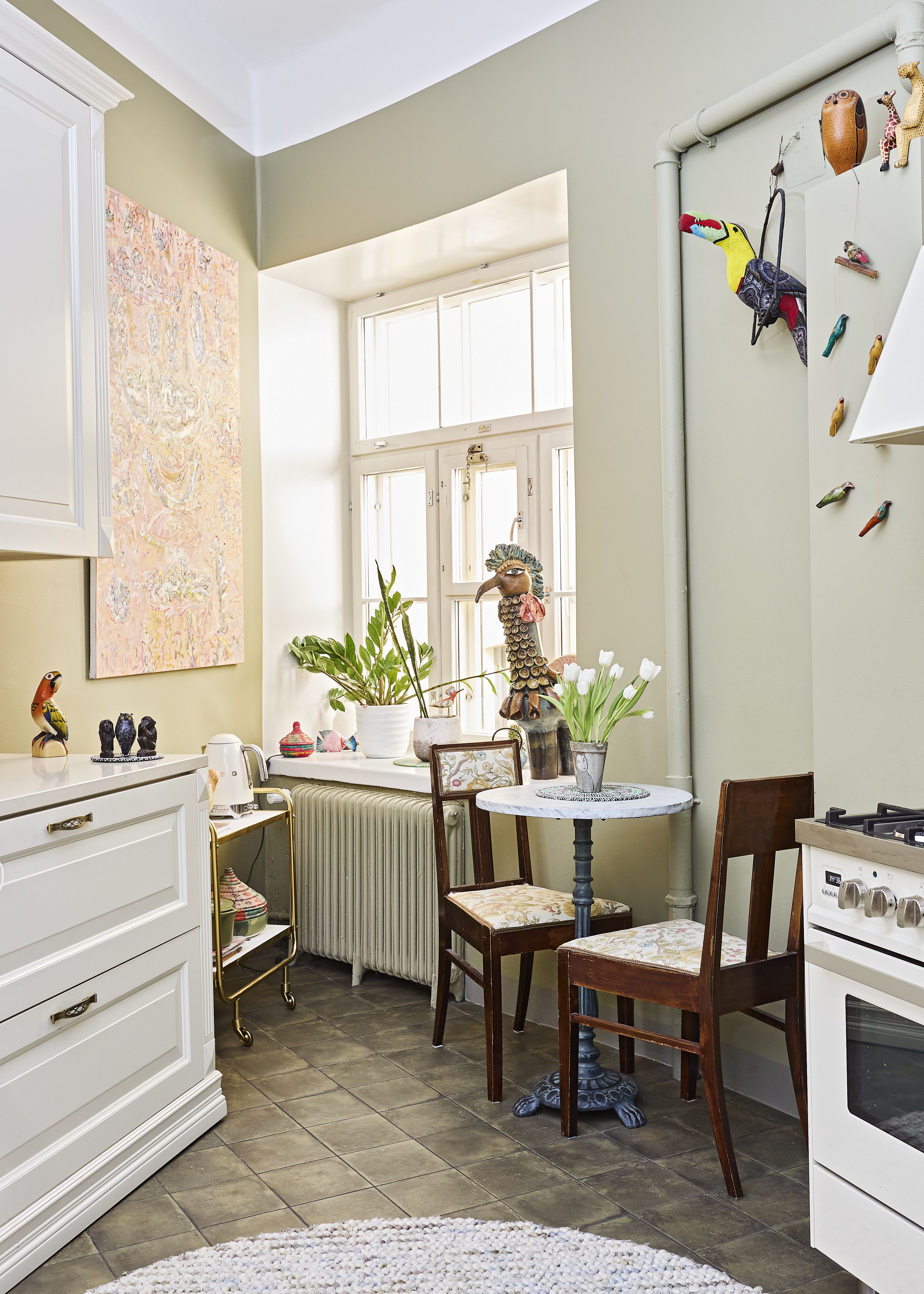 Yhdistelemisen vapaus, joka Samilla on musiikissa ja minulla taiteessa, näkyy myös meillä kotona: ei ole yhtä laatikkoa, jonka sisällä toimia. Minulla ei ole oikein ikinä ollut ajatusta siitä, mitkä asiat kuuluvat tai sopivat yhteen, koska toimin intuitiivisesti. Joidenkin mielestä täällä ei moni asia sovi yhteen, mutta vain sillä on merkitystä, mikä sopii meille.
