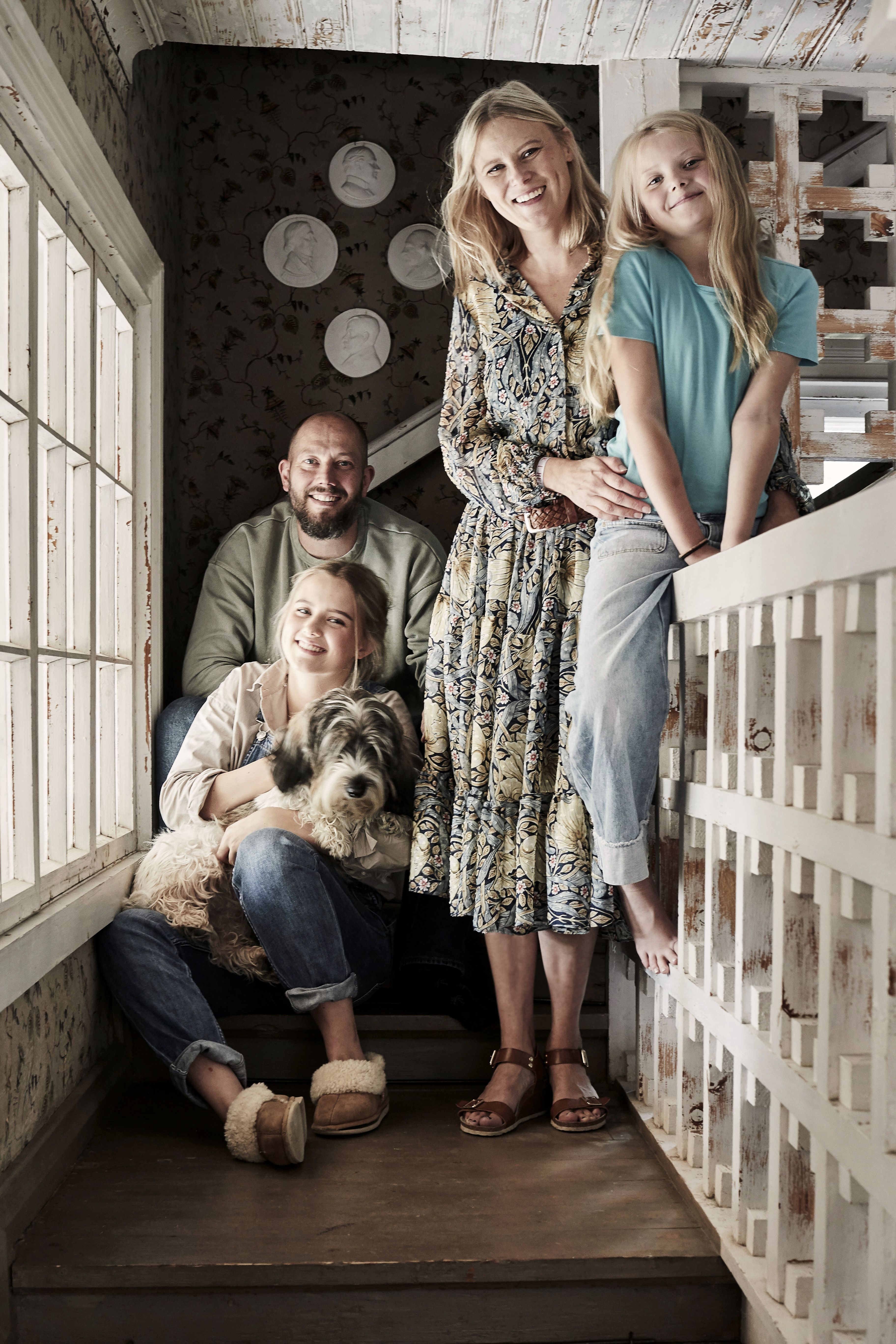 Asukkaat: Sisustussuunnittelija ja visualisti Anna-Kaisa Melvas, yrittäjä Mikko Melvas sekä lapset Eva,17, Leo, 15 , ja Martta, 10.