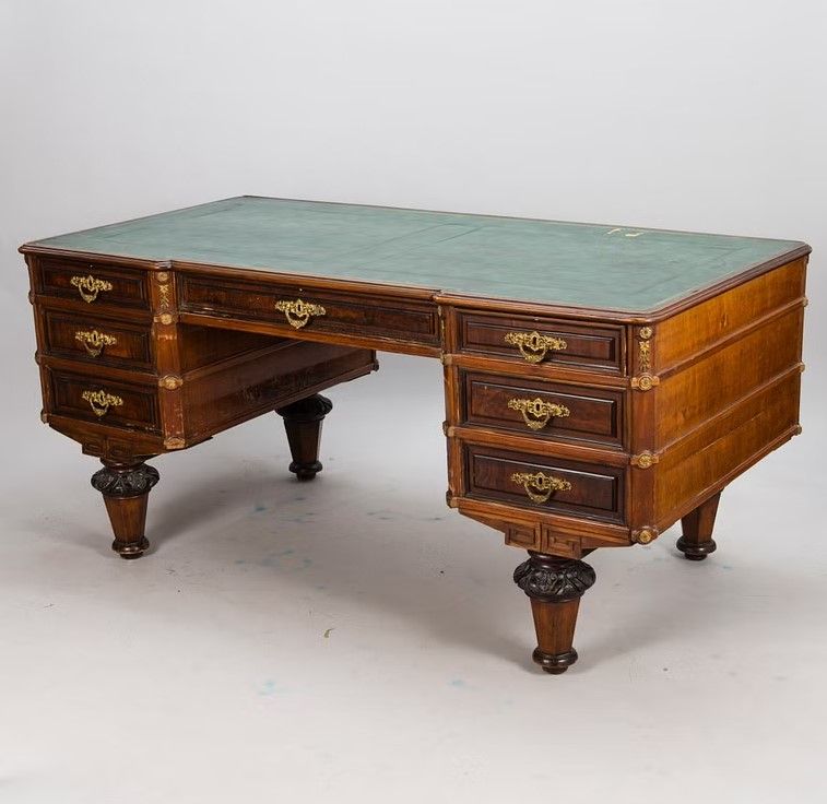 9. En tiennyt tarvitsevani 1800-luvun täyspuista uusrenessanssityöpöytää, jossa on syvät laatikot ja sorvatut jalat. Kaikki tarvitsemani on lähellä ja järjestyksessä.