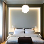 Verhojen iso tekstiilipinta pehmentää huoneen akustiikkaa merkittävästi. Verhot ovat myös visuaalisesti iso sisustuselementti, ja niistä voi tehdä huoneen keskeisen idean. Suunnittele makuuhuone aina kokonaisuutena: pinnat, tekstiilit ja kalusteet. Värillisillä verhoilla voi esimerkiksi värjätä siivilöityvää päivänvaloa ja luoda sävykästä tunnelmaa koko tilaan. Seinien ja verhojen yhtenäisellä värillä saa aikaan rauhallisen ilmeen.