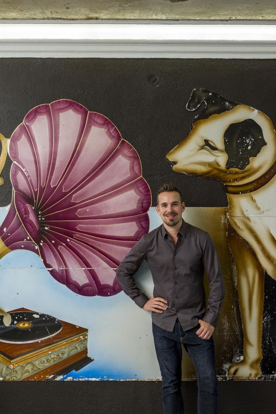 Visiitti: Vaatesuunnittelija Teemu Muurimäki poimi kotinsa värimaailman levy-yhtiön antiikkisesta mainostaulusta