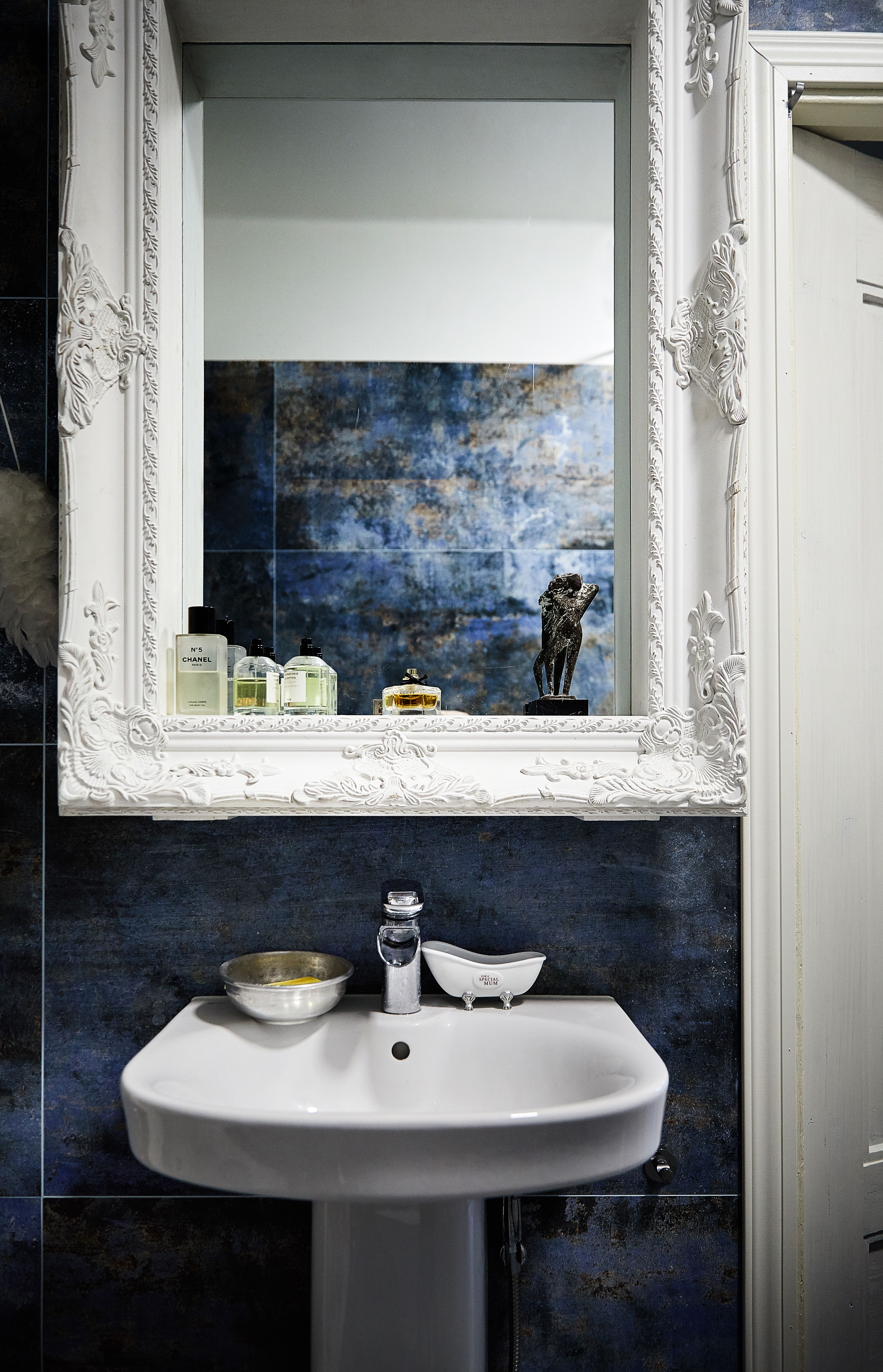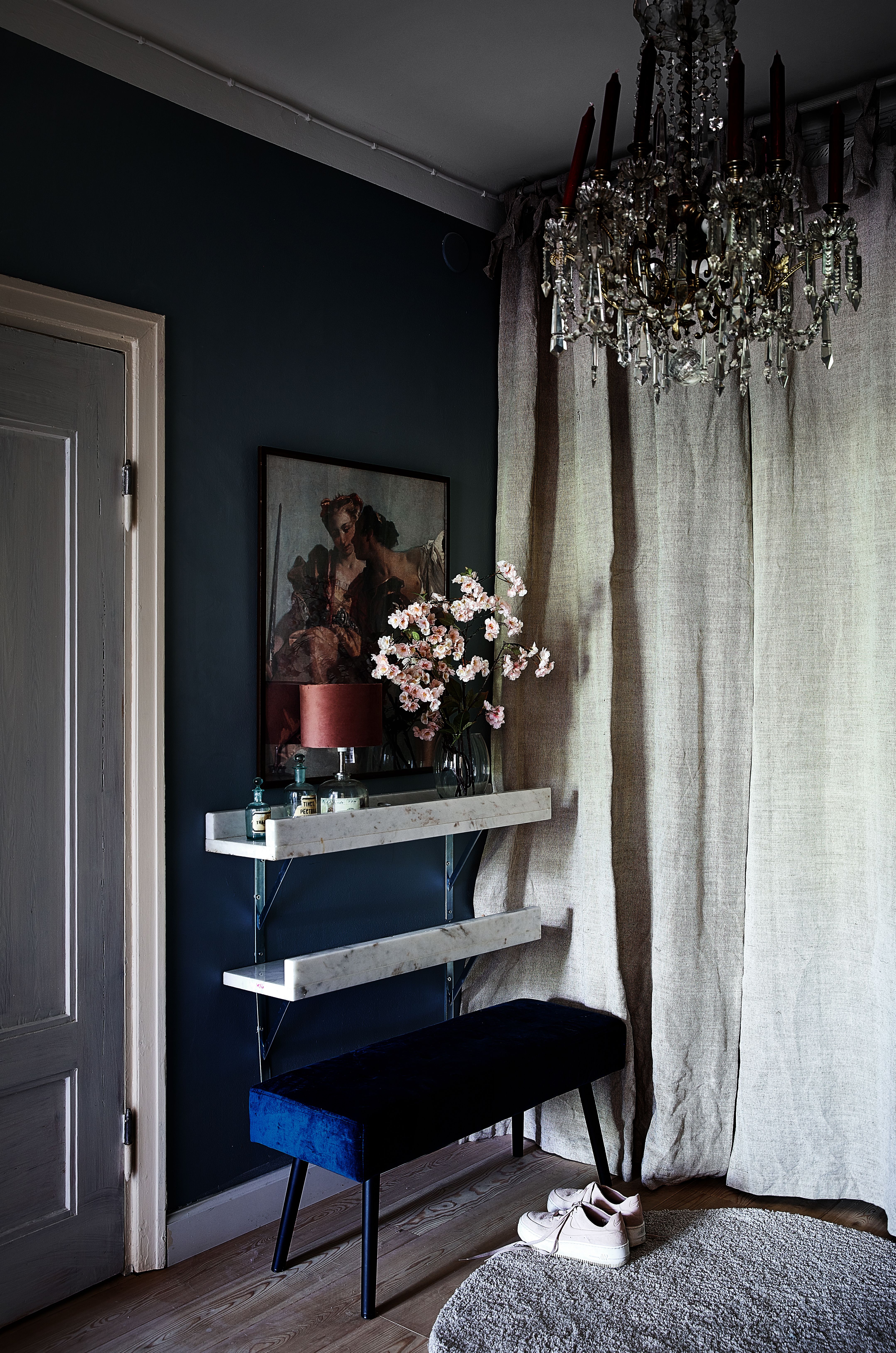 Entinen ja nykyinen kotini ovat kuin yö ja päivä. Rivitalokoti Länsi-Helsingissä oli hurmaavan kaunis valkoisine kalusteineen, sekin esiteltiin aikoinaan sisustuslehdissä. Olin hullaantunut Riviera Maisonin kalusteisiin ja kodissa oli paljon valkoista sekä lasisia yksityiskohtia. Myös Kartellin läpinäkyvät Louis Ghost -tuolit olivat siellä isossa roolissa. Täällä puolestaan on lämpöä ja pehmeyttä, materiaaleina samettia, marmoria sekä upea puulattia. Rakastan ajatusta siitä, että laskeudun kotoani vain muutaman portaan ja olen muotiliikkeessäni, samaan tapaan kuin Coco Chanel aikoinaan omassa talossaan. Työni stailaajana on kehittänyt taitoa valita parhaat palat ja toisaalta luopua kaikesta turhasta. Valitsin tännekin jokaisen esineen yksitellen ja mietin sille oman paikan.