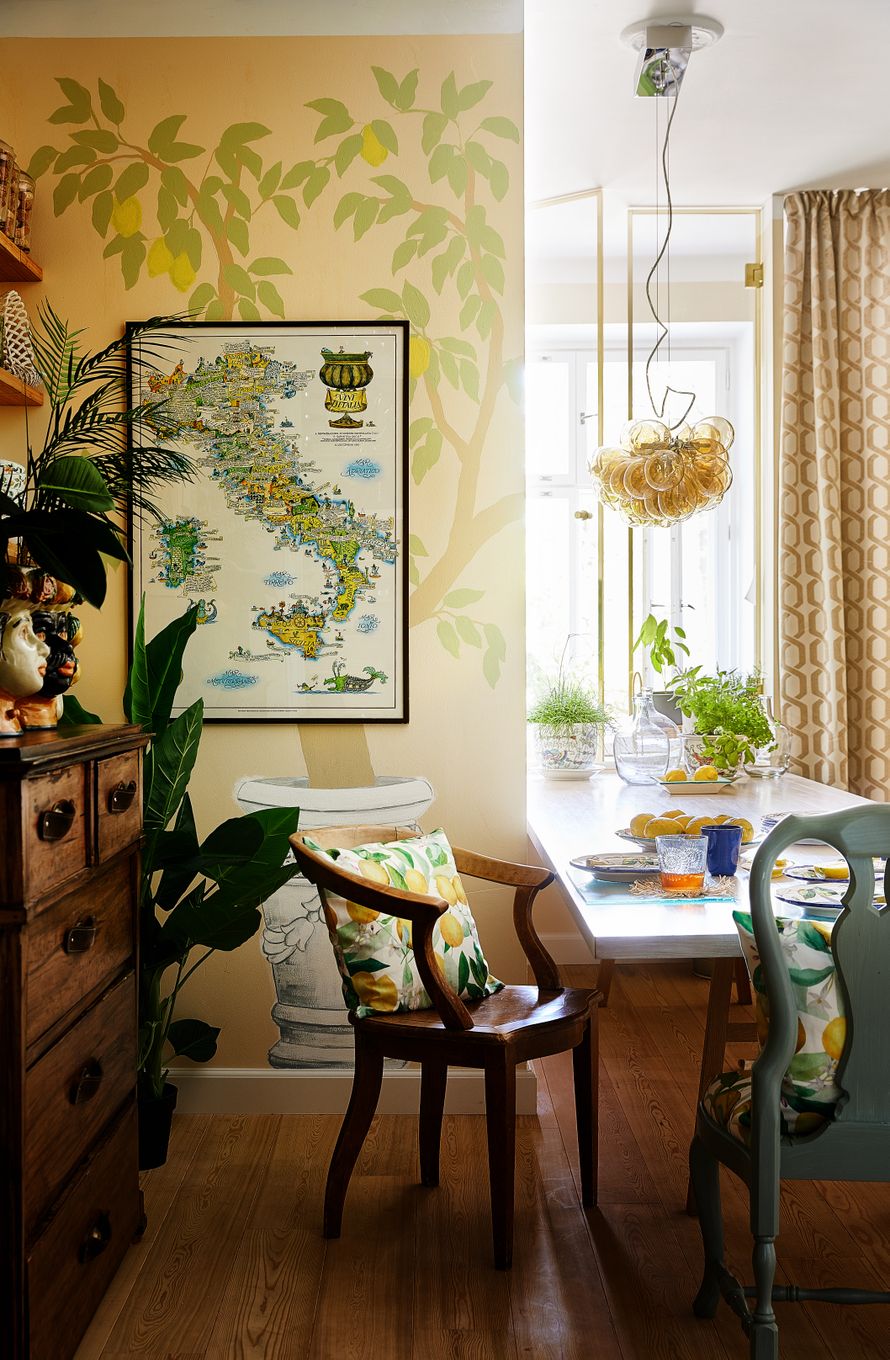 Voimakkaita värejä ja sitruunapuu seinällä – Leenan kodissa tunnelma on kuin Italiassa