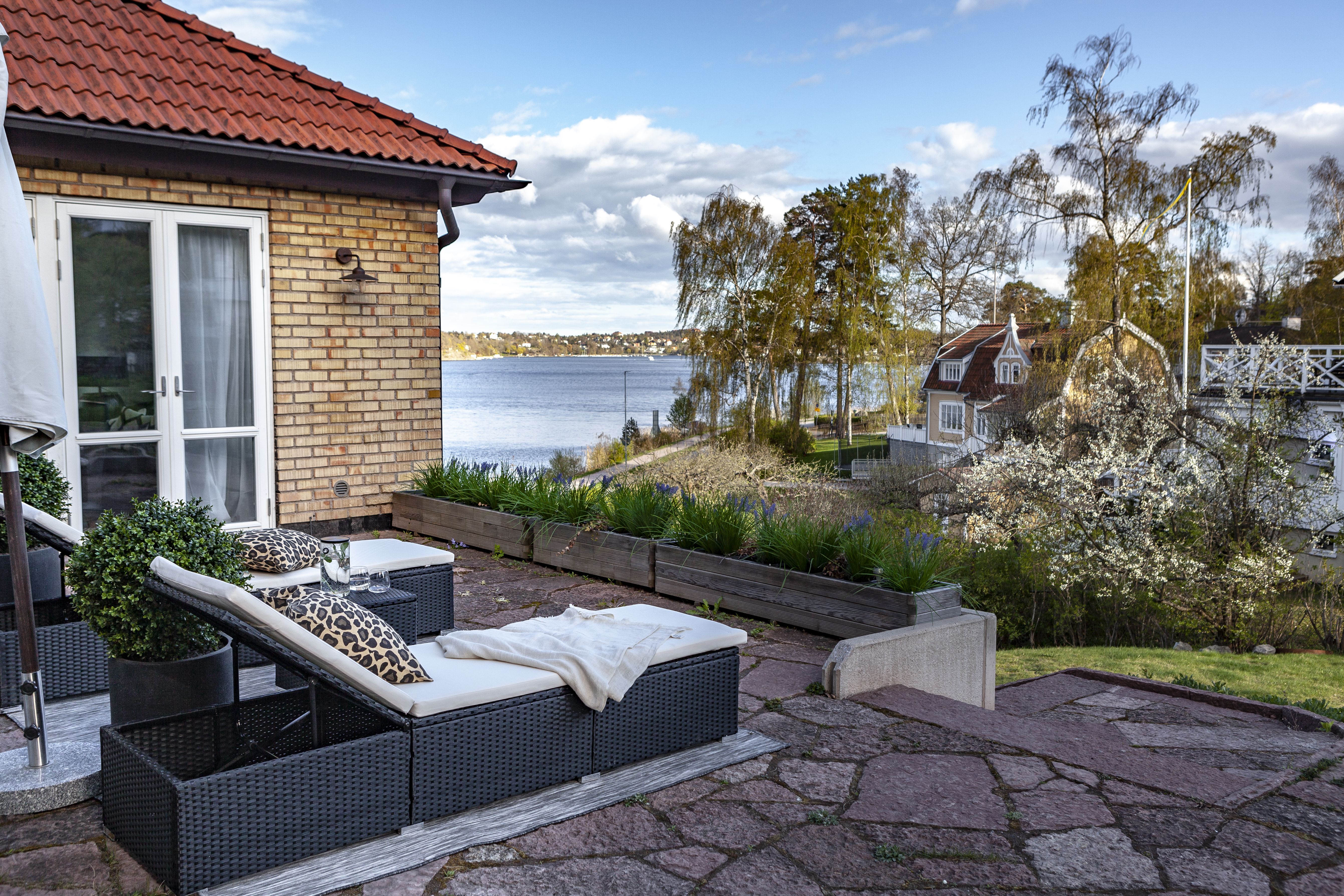 Päätös vuokraamisesta tapahtui heti, kun näimme olohuoneesta aukeavan näkymän. Olimme katsoneet sinä päivänä seitsemän asuntoa eri puolilla Tukholmaa ja tämä oli viimeinen. Olimme aivan poikki kaikesta näkemästämme. Ulkoapäin talo näytti omituiselta ja hieman rähjäiseltäkin. Sisällä aloimme kuitenkin tuntea toisin, ja ratkaisu oli helppo tehdä yläkerrassa, jossa suuri olohuoneemme aukeaa kolmeen suuntaan melkein meren ylle. Remontissa säilytetyt alkuperäiset 50-luvun elementit toivat tunnelmaa sisältä siistiksi remontoituun taloon.