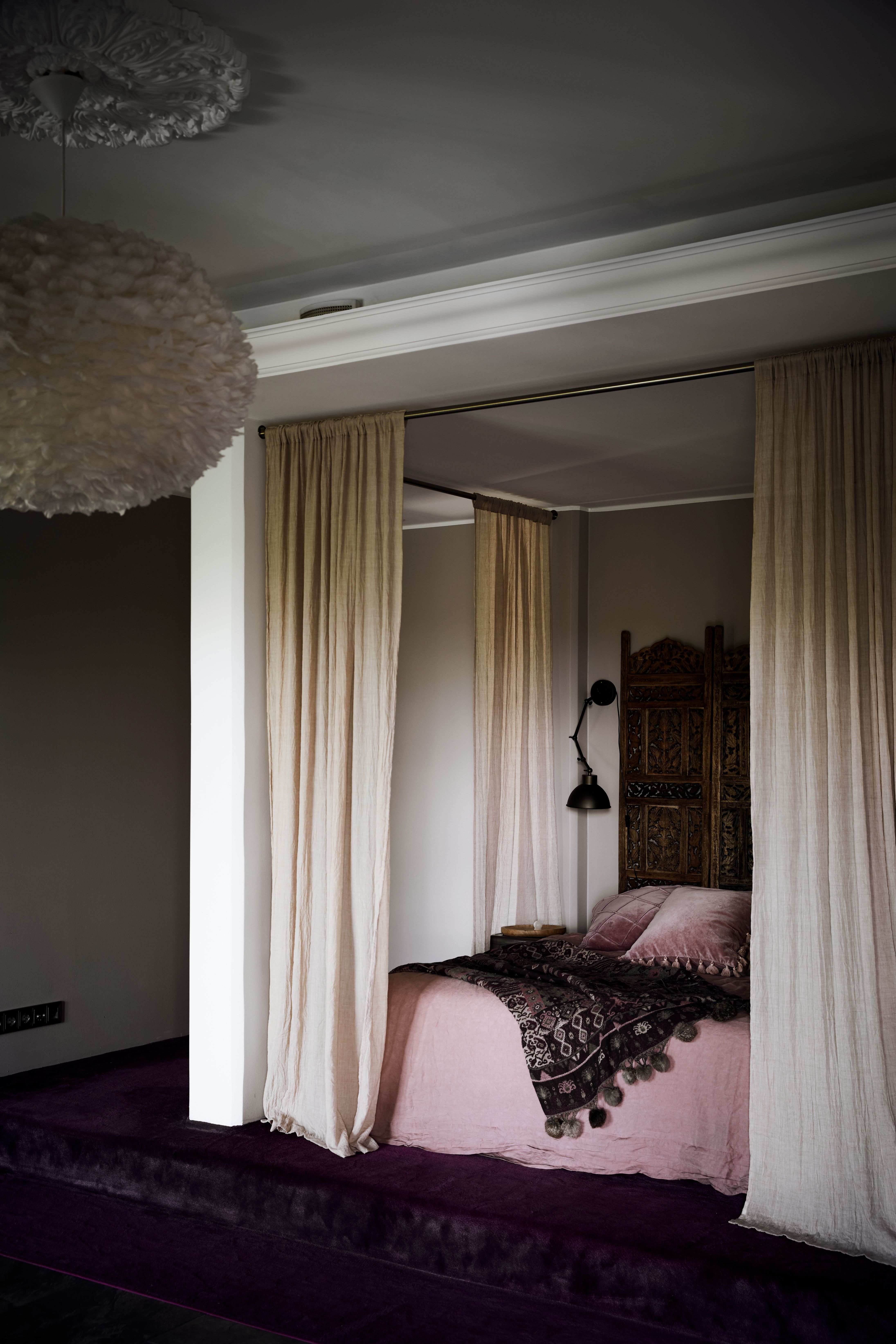 -Tavoittelin makuuhuoneeseen majesteettista tunnelmaa, joka vie ajatukset Tuhannen ja yhden yön satuihin, Weronica kuvailee.