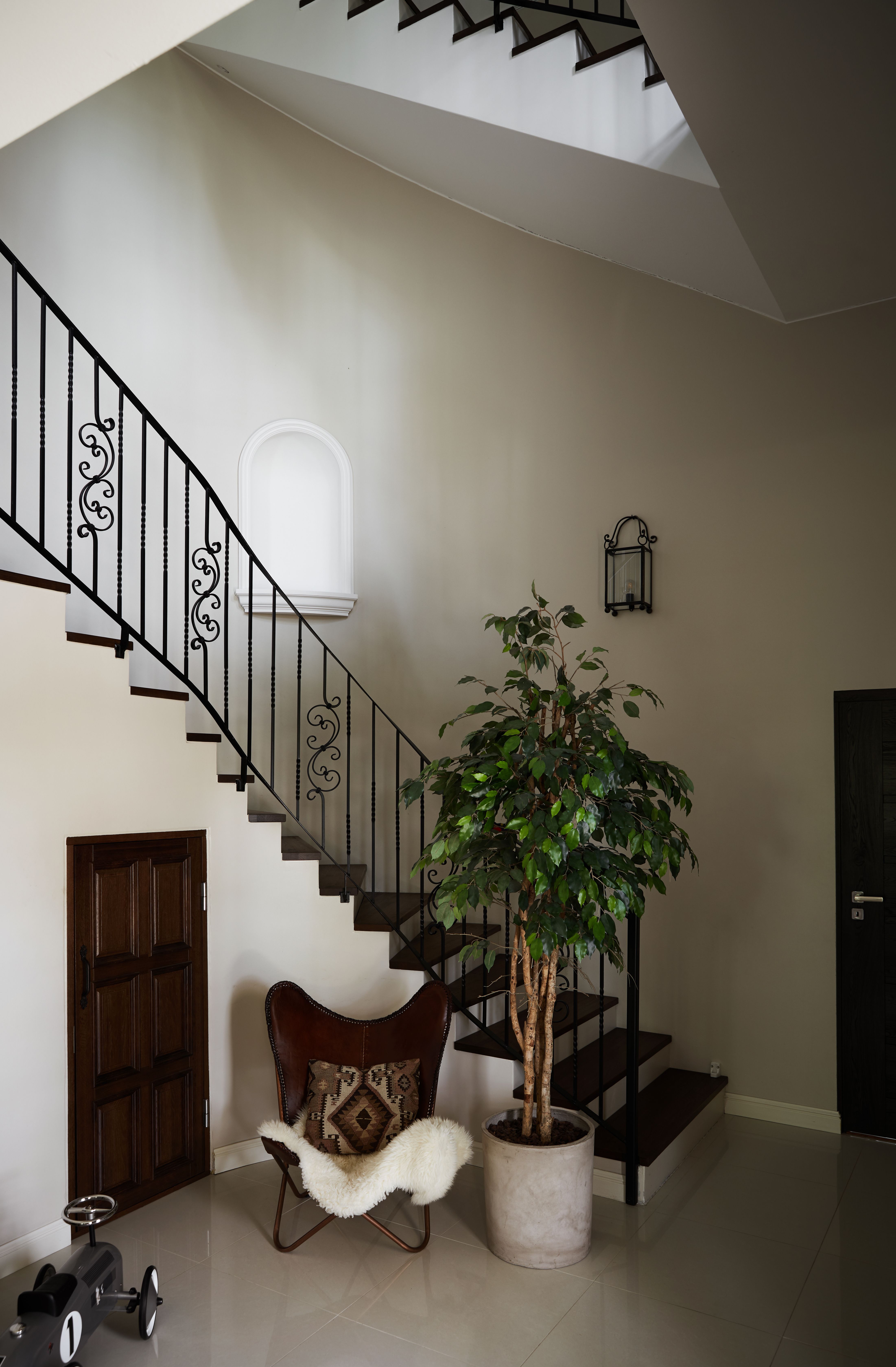 Pariskunnan työnjako toimii hyvin: sisustussuunnittelijana ja visualistina työskentelevä Weronica ideoi, valitsee värit ja suunnittelee kalustusta yhdessä Santerin kanssa. Käsistään taitava Santeri puolestaan rakentaa ja remontoi. Tähän kotiin haluttiin erityisesti avaria huonetiloja, näkymiä huoneesta toiseen sekä isot ikkunat, joista luonnon värimaailma pääsee tulvimaan sisälle asuntoon. Kolmikerroksisen talon keskipisteenä kohoaa näyttävä portaikko.
