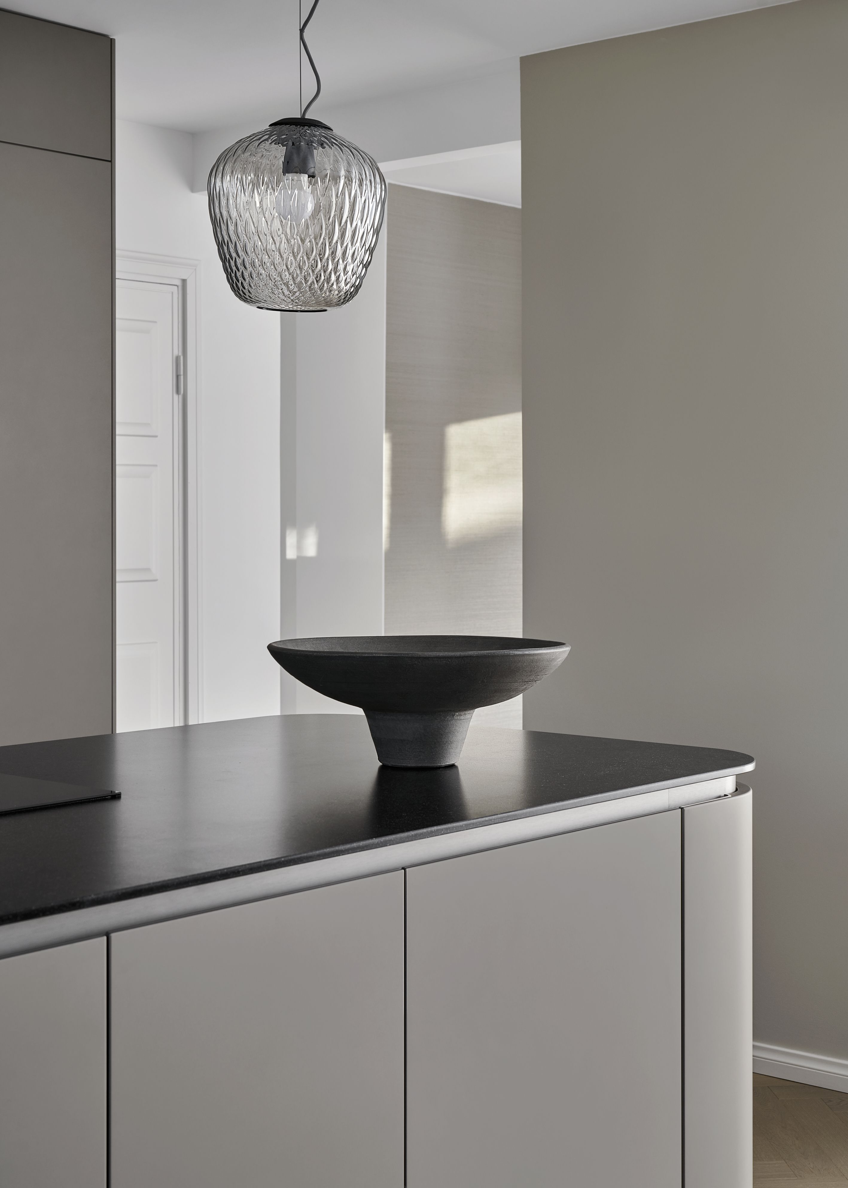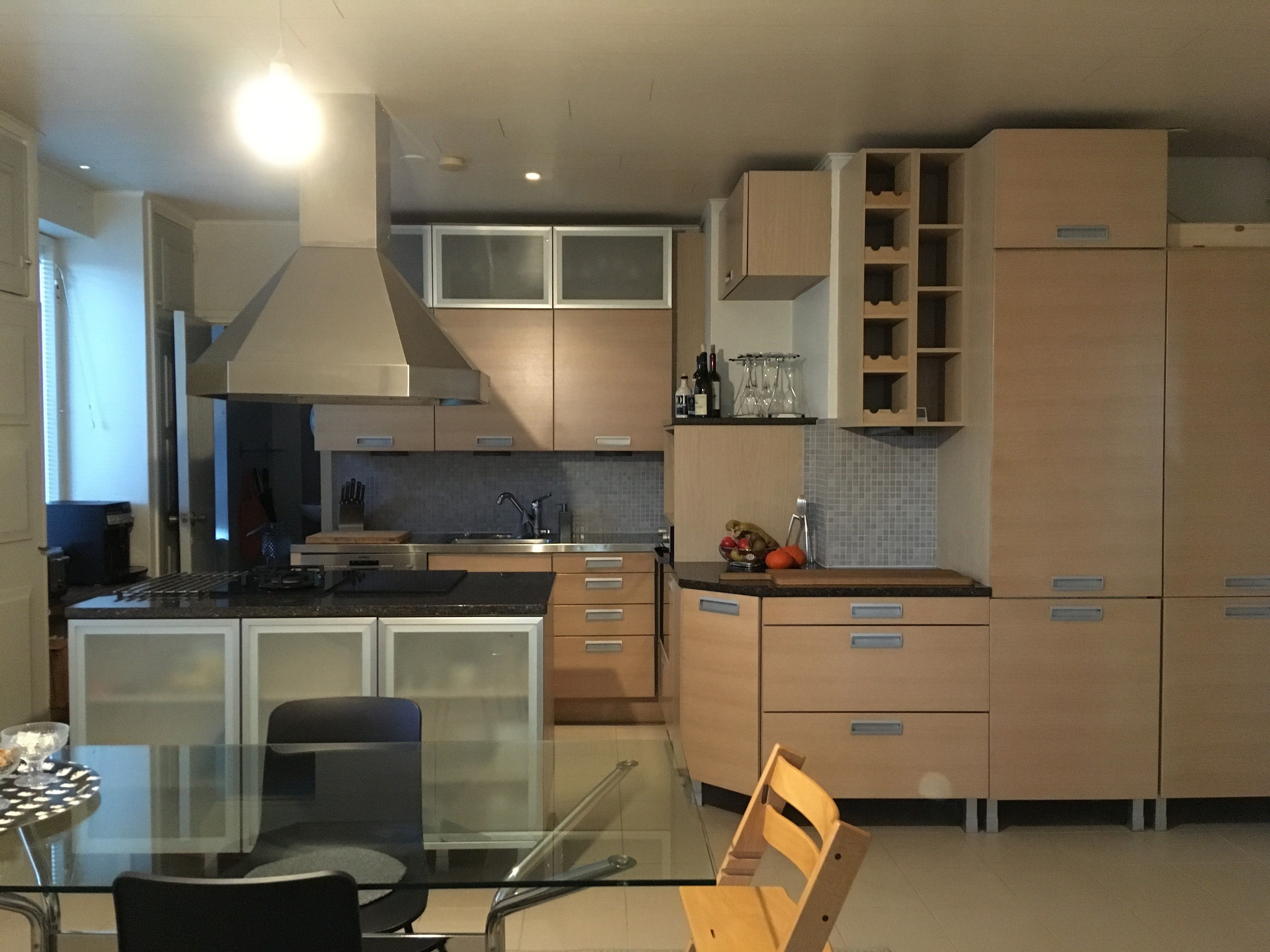 Perheen mielestä vanha keittiö oli yleisilmeeltään sekava ja jäsentelemätön. Tila oli toiminnoiltaan epäkäytännöllinen. Toinen ongelma oli niin luonnonvalon kuin valonlähteidenkin vähyys. Siispä tilaa päätettiin avartaa purkamalla seiniä keittiön ja olohuoneen väliltä, minkä ansiosta valo saatiin virtaamaan huoneiston läpi. Lisäksi keittiön kattoon asennettiin tehokkaat kohdevalaisimet kiskoilla, jolloin valojen määrää pystyttiin säätelemään tarpeen mukaan.