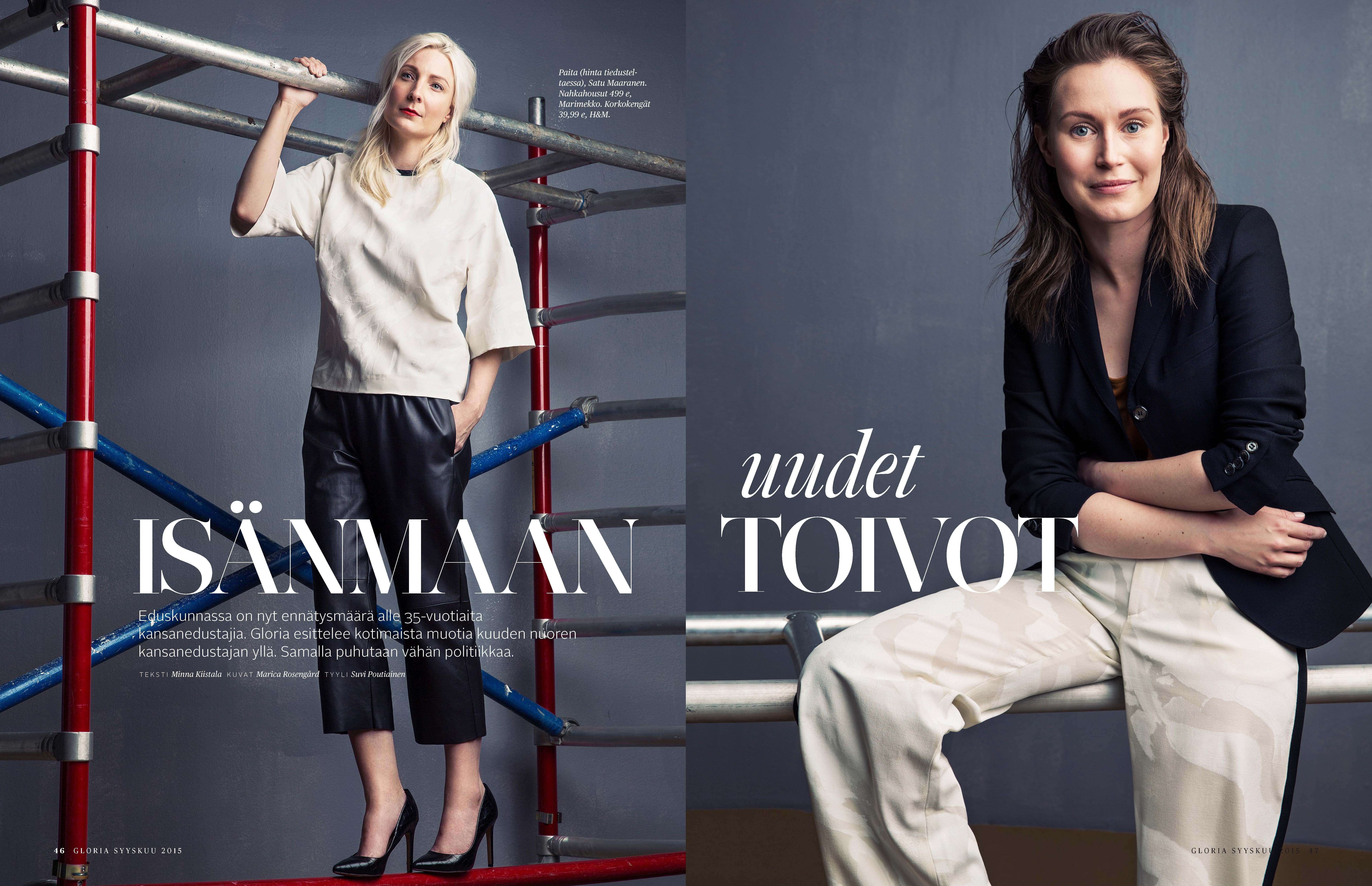 Aina muotijutussa ei tarvitse olla ammattimalleja. Kuvasimme Suomi-muotia uusien nuorten kansanedustajien yllä. Samalla puhuimme vähän politiikkaa.