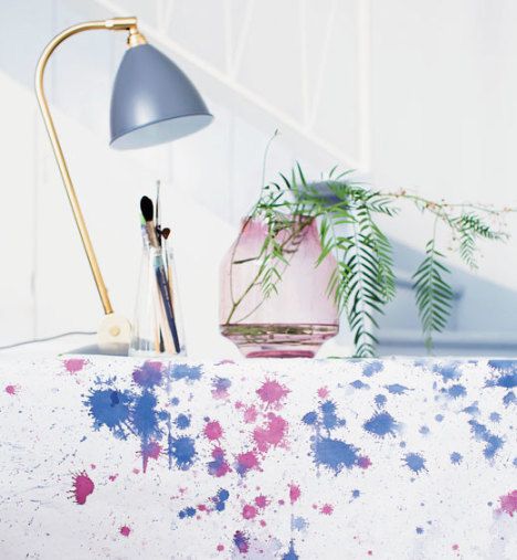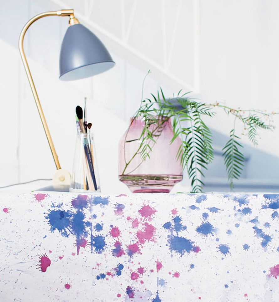 Tee muodikkaasti vesivärimaalausta muistuttava pöytäliina valkoisesta peruslakanasta.