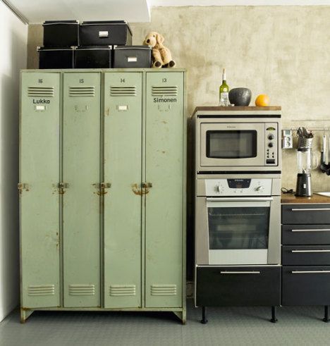 Autokorjaamon vanhat pukukaapit ovat päätyneet keittiökaapeiksi. Katso ideat!