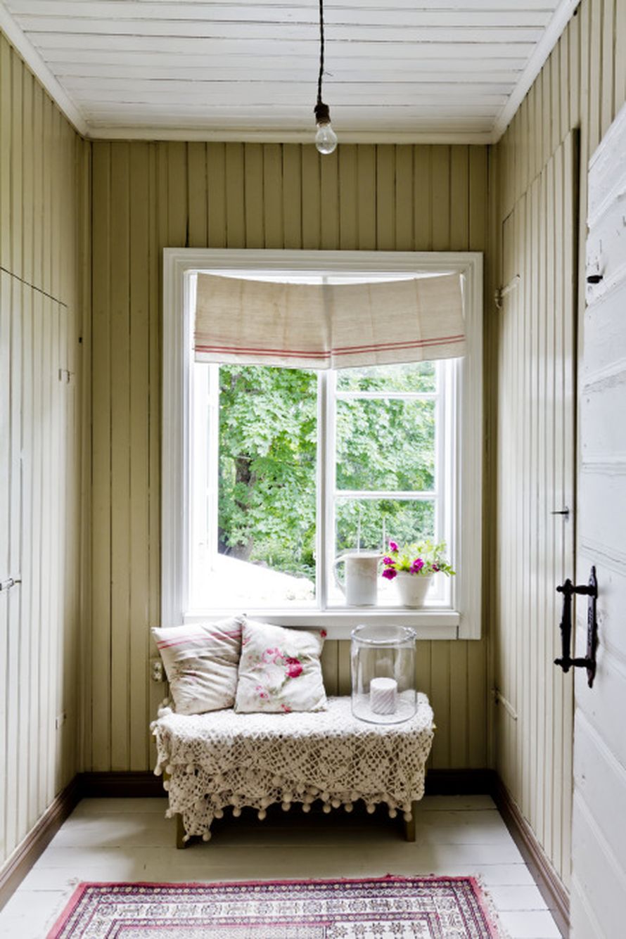 Mummolan tunnelma. Vaivattomimmat mökkiverhot syntyvät keittiöpyyhkeistä ja verhovaijerista. kuva, Riitta Sourander