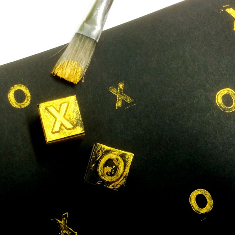 Leimojen käyttäminen ei aina vaadi mustetta, sillä leimaa voi myös dipata erilaisiin maaleihin. Jos leimasimen jälki tuntuu leviävän helposti, saa sen kuviopintaa siveltimellä maalaamalla siistempää jälkeä. Myös leimamerkin tussittaminen toimii. Kuvan leimasimet on hankittu Granitista. Vinkki: Leimaa paperiin lahjan vastaanottajan nimikirjaimia.
