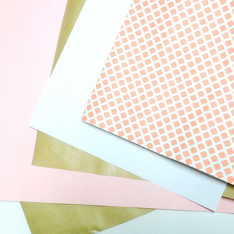 Sekalainen joukko papereita valmiina pukemaan kukkia! Vasemmassa laidassa näkyy vanhalla kunnon roiskimistekniikalla koristeltu paperi. Roiskekuosi on huipputrendikäs ja sen teko onnistuu lähes poikkeuksetta. Valitse sopiva maali ja ohenna sitä vedellä. Muistathan suojata itsesi ja ympärillä olevat huonekalut! Vinkki: Älä käytä vesiväriä! Se tuppaa leviämään kosketuksesta kuivuttuaan.