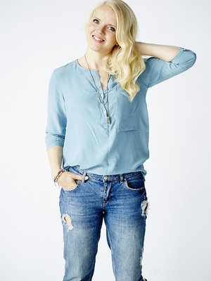 Tamperelaisen INCH"-liikkeen kauppias Anu Bergholm luottaa rentoon mutta huoliteltuun tyyliin