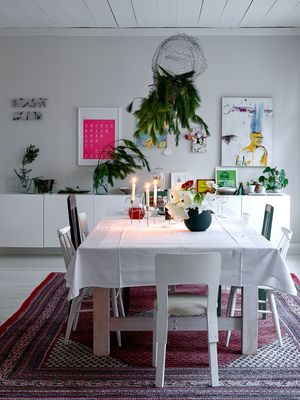 Sisustussuunnittelijan joulukoti Ullanlinnassa kylpee puuterisissa sävyissä