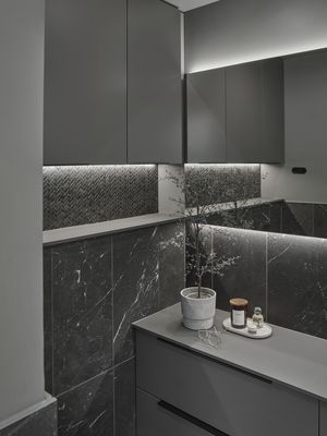 Sisusta Komerosta kylpyhuoneeksi – tarpeettomista pikkuneliöistä loihdittiin tumman tyylikäs vieras-wc