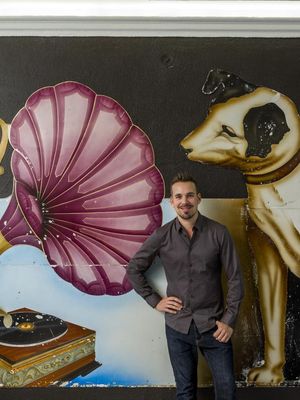 Sisusta Visiitti: Vaatesuunnittelija Teemu Muurimäki poimi kotinsa värimaailman levy-yhtiön antiikkisesta mainostaulusta