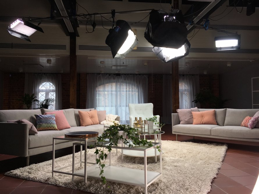 Tilan rakentaminen tv-ohjelmaan erosi aika lailla sisustuskuvauksien teosta. Ympärillä hääri koko ajan noin parikymmentä valo- ja kameramiestä, kun sisustuskuvia tehdään pääasiassa kahdestaan rauhassa valokuvaajan kanssa. Siellä sitten väisteltiin toisiamme, minä mattorulla toisessa, maljakko toisessa kainalossa, kameramiehet isoja puomeja nostellen.