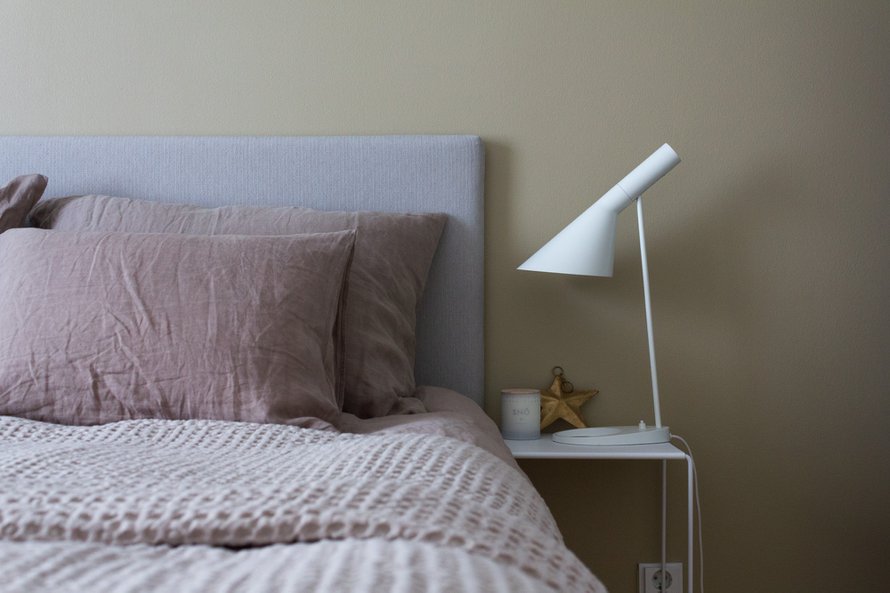 Olen nyt joulua kohti lisännyt lämpimiä sävyjä kuten ruskeaa kotiin pikkuhiljaa ja tämä väritys saavutti myös makuuhuoneen jokin aika sitten, kun löysin uuden päiväpeiton meidän parisänkyyn. Meillä ei ole siis ollut ollenkaan päiväpeittoa todella moneen vuoteen, kun mieluista ei ole löytynyt. Asun-Anno-pop up-kaupasta (vielä vuoden loppuun osoitteessa Uudenmaankatu 36, Helsinki) ostin kuitenkin ex-tempore meille Annon Kumpu-päiväpeiton, joka tunnultaan ja väritykseltään on hyvin mieluinen.
