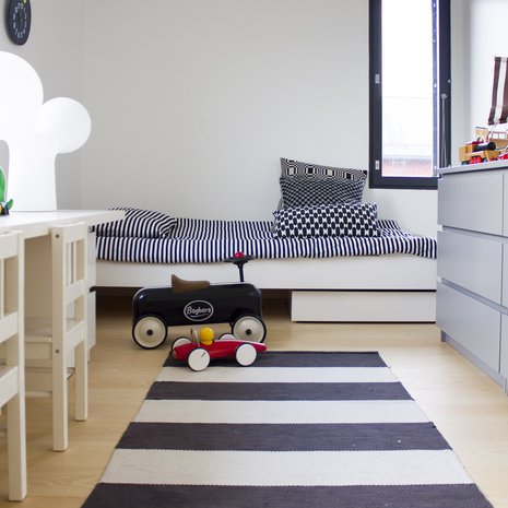 Kun aikani makustelin, päädyin ehdottamaan peiliä makuuhuoneeseen vanhan puukaapin päälle. Ja sinne sen mies lopulta saikin sitten laitettua. Vanhan puukaapin päällä sekoittuvat iloisesti eri metallinsävyt kuparista hopeaan. Muutama uusi mattokin meille on hankkiutunut, yksi niistä, Finarten Aitta, on nyt myös makuuhuoneessa.
